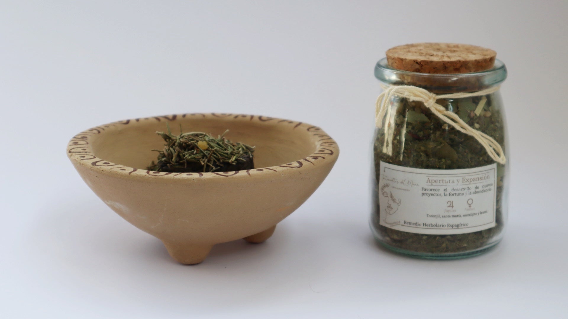 Incluye: 40 gr. de hierbas (rociadas de Medicina Espagírica y Flores de Bach). Incluye plato y 2 carbones.